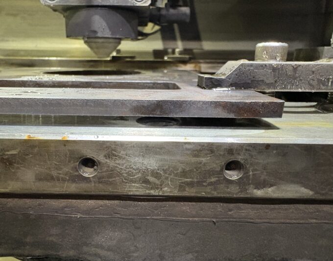 外形と手前の長穴はレーザーで先に加工し、その後に焼入れ。