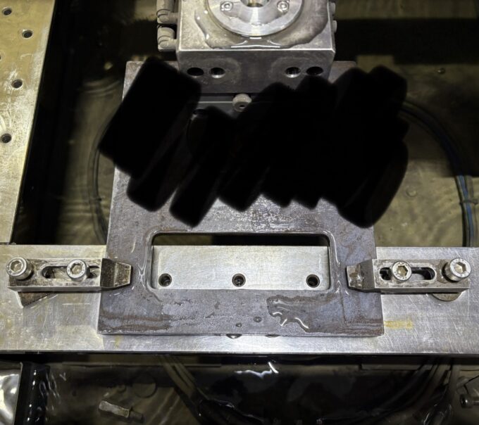 ワイヤカット側で段取りとクランプ方法を工夫して仕上げました。